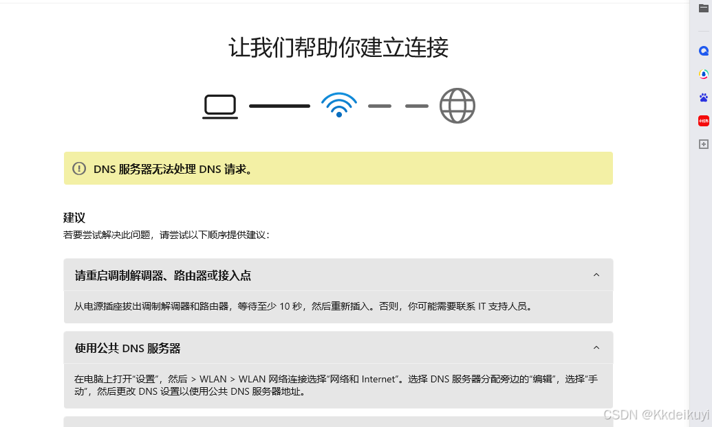 大多数因特网服务依赖于 DNS 而工作,一旦 DNS 出错,就无法连接 Web 站点。