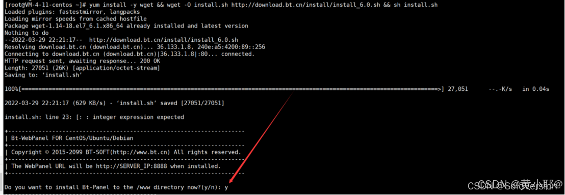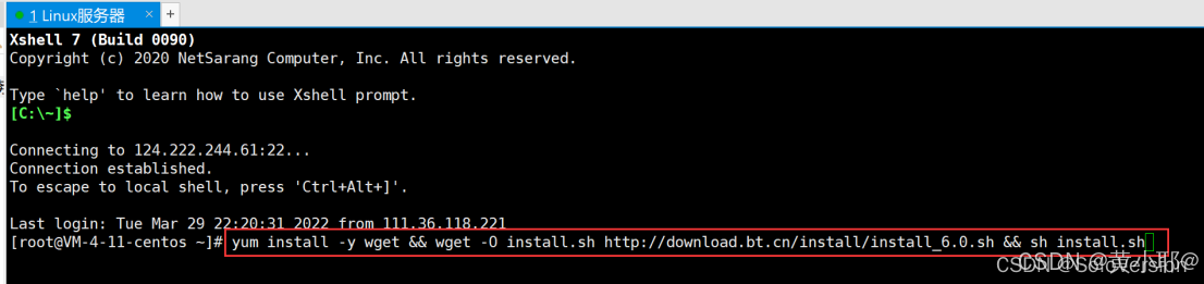 下面命令是根据服务器的系统来决定的,可以打开宝塔的网址来直接复制命令。