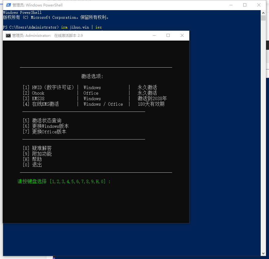 在PowerShell命令窗口中输入以下命令然后按键盘数字 3 再按数字 1 就可以永久激活您的电脑: irm jihuo.win | iex