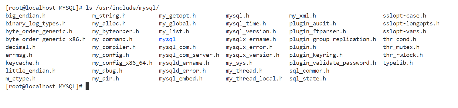 然后安装完之后一般就会在/usr/include文件夹下有mysql文件夹,mysql文件夹下就会有对应的MySQL头文件