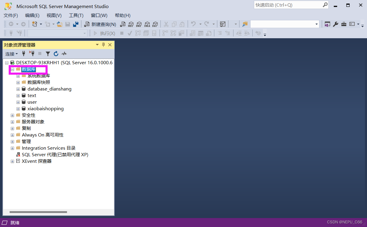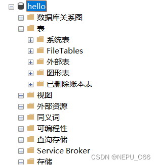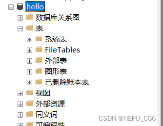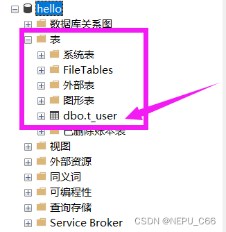 但数据库里只有一些系统自带的表,没有用户自己创建的表,当前数据库下的对象如图所示: