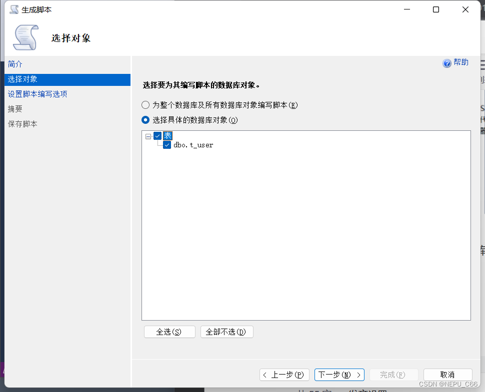 3、(跳过简介)选择该数据库中具体的某些表(如下图,选择所有当前数据库下的所有表格)