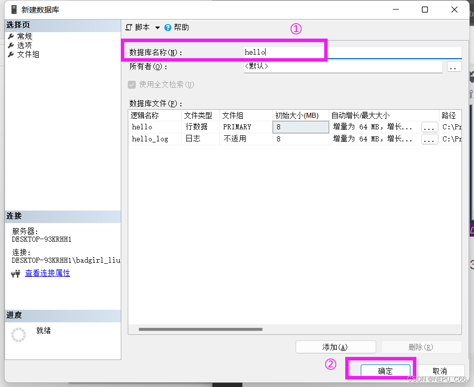 2、在弹出以下窗口中输入新建的数据库名(不要和已有的数据库名重复)