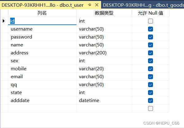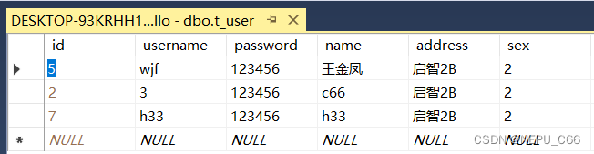 选择user表,右键“编辑前200行”,可以查看当前表中的数据如下: